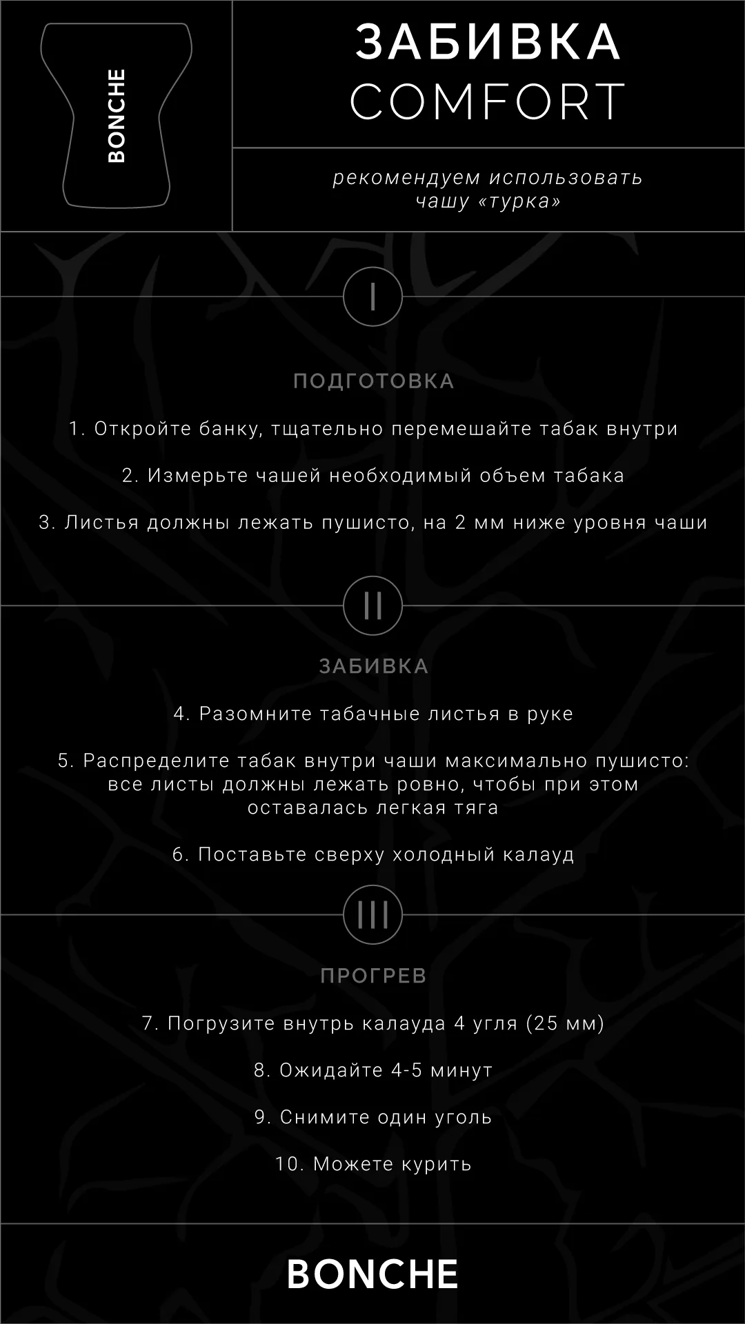 Табак Bonche (Бонч) — это продукт, сделанный на основе сигарного листа. При курении чувствуется натуральный ароматизатор личи на фоне сигарного листа с благородным табачным оттенком.